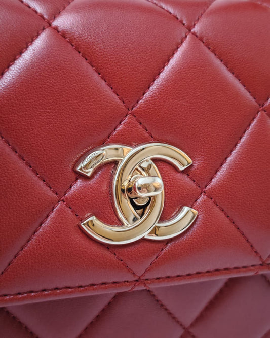 Chanel Small Top Handle Flap Bag – Red Lambskin & Gold Hardware