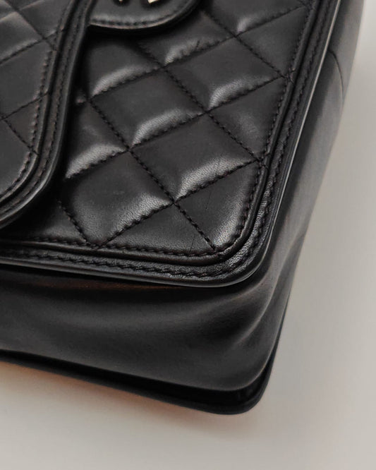 Chanel Classic Double Flap Bag – Black Calfskin with Aged Silver & Black-Tone Hardware