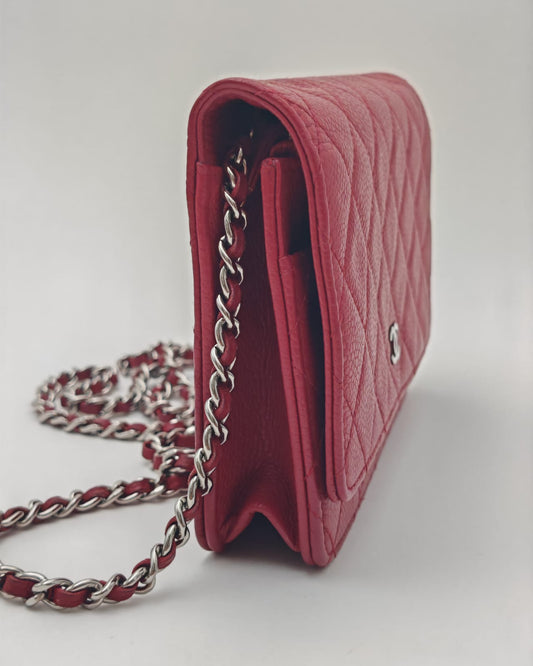 Chanel Wallet on Chain – Red Caviar Leather with Silver Hardware