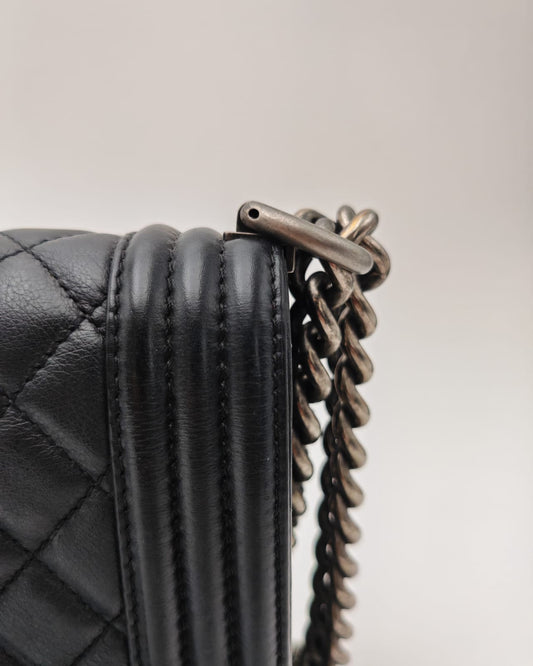 Chanel Boy Bag – Black Quilted Calfskin with Aged Ruthenium Hardware