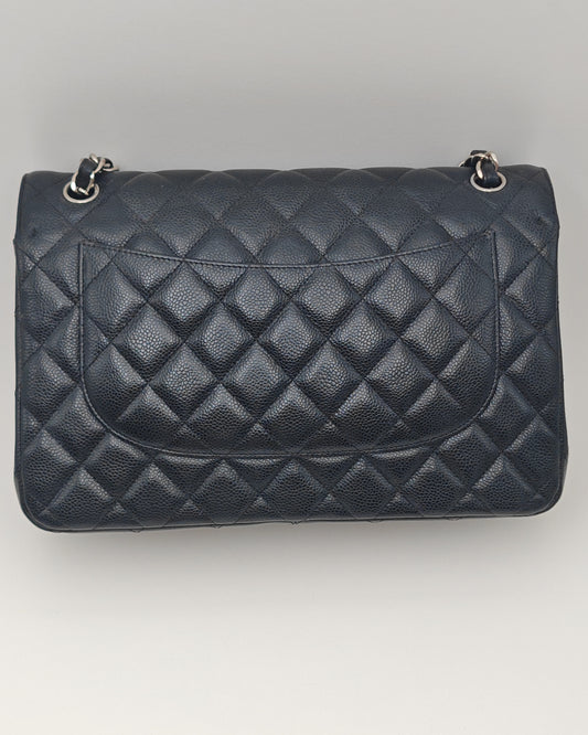 Chanel Classic Flap Bag – Jumbo Black Caviar Leather with Silver Hardware