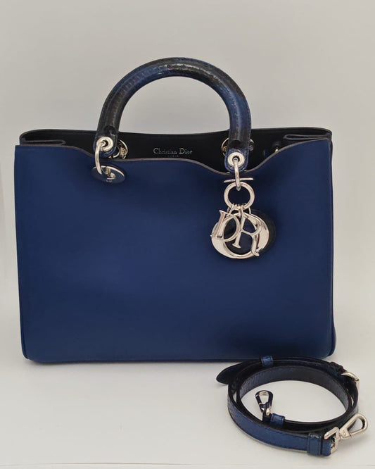 CHRISTIAN DIOR Calfskin Medium Diorissimo Bag with Python Handles and Strap