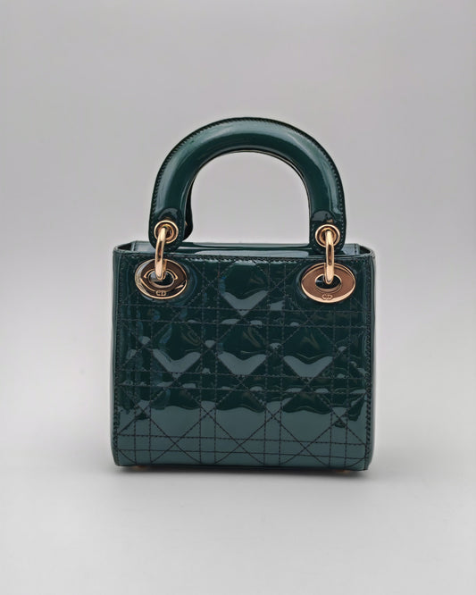 Christian Dior Lady Dior Mini in Deep Green Patent Cannage Leather with Gold Hardware