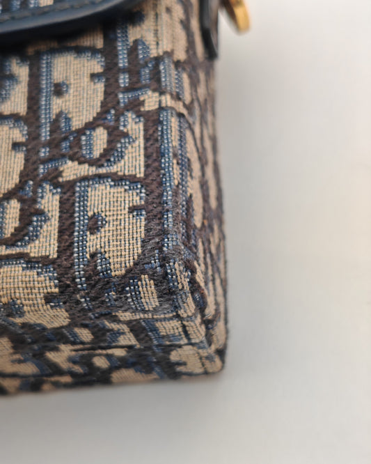 Christian Dior 30 Montaigne Box Bag in Blue Oblique Canvas with Gold Hardware