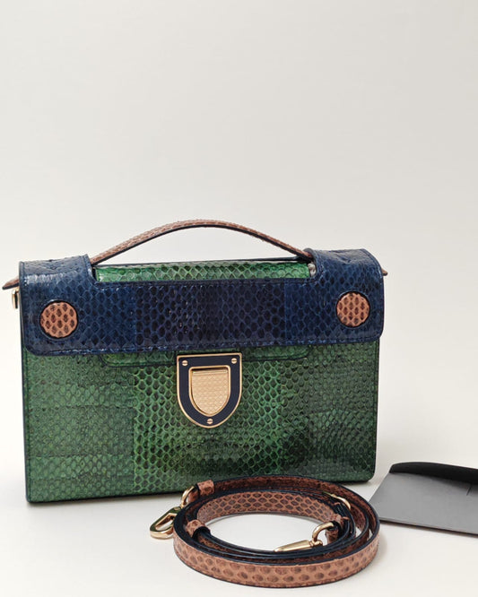 Christian Dior Exotic Python-Embossed Structured Bag in Emerald & Midnight Blue