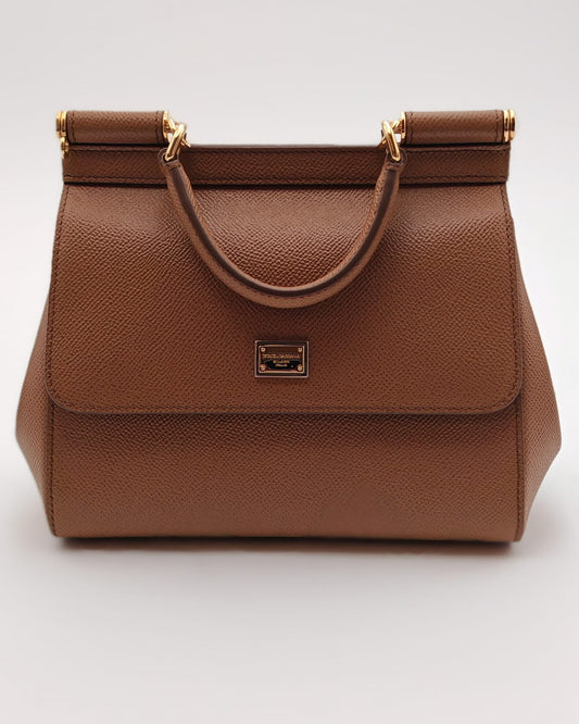 DOLCE & GABBANA SICILY MEDIUM BAG – BROWN DAUPHINE LEATHER