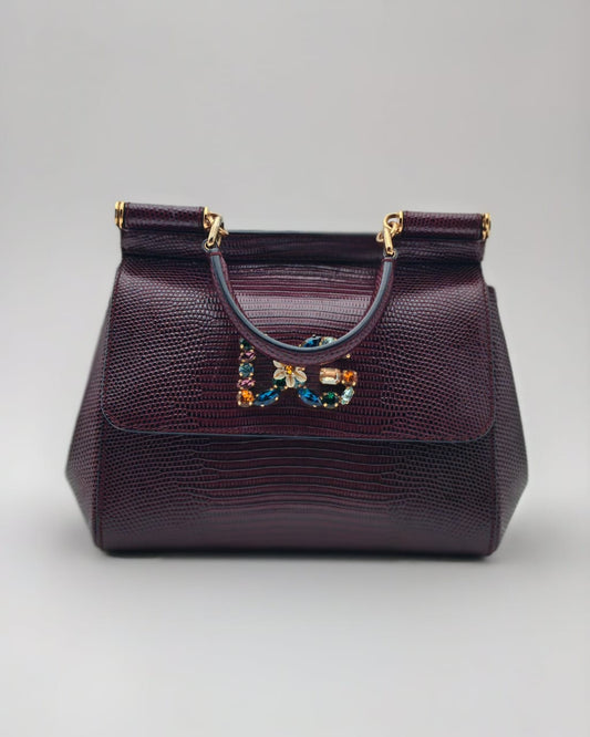 Dolce & Gabbana Lucia Lizard-Embossed Shoulder Bag in Burgundy
