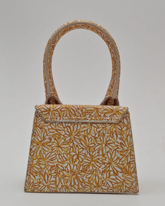 Jacquemus Le Chiquito Mini Top Handle Bag in Mustard Floral Canvas