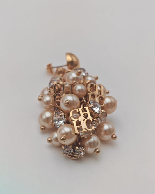 Carolina Herrera CH Pearl & Crystal Logo Earrings