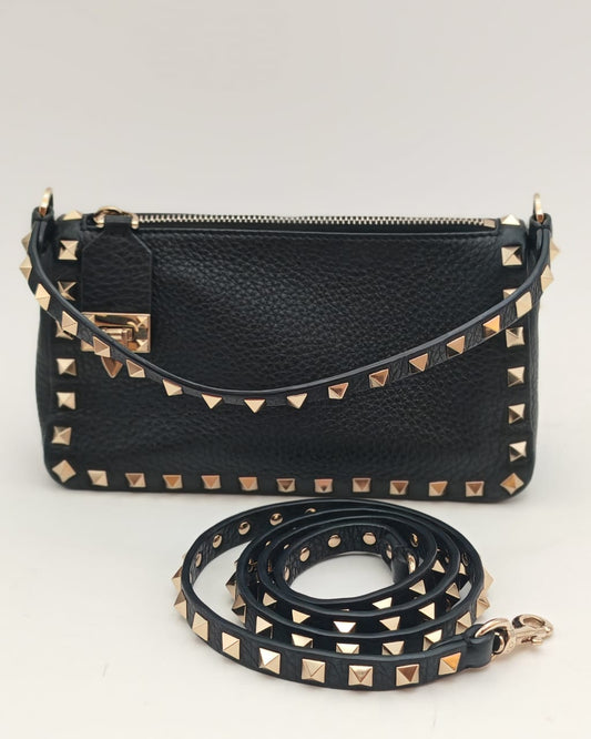 Valentino Garavani Rockstud Leather Shoulder Bag – Black