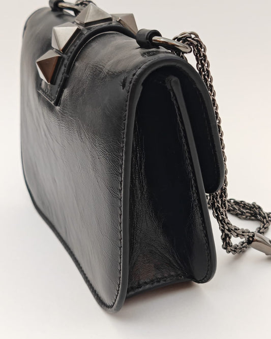 Valentino Garavani Rockstud Crossbody Bag in Black Crinkled Leather