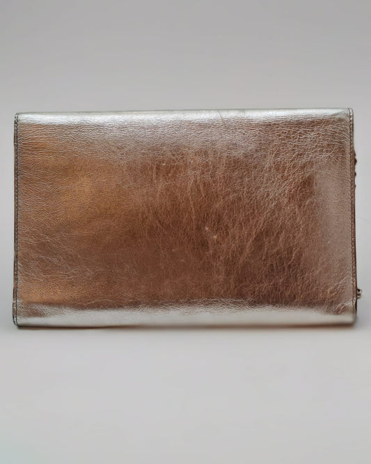 Saint Laurent Metallic Silver Crinkled Leather Monogram Chain Wallet