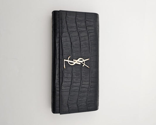 Saint Laurent Classic Monogram Clutch in crocodile-embossed leather