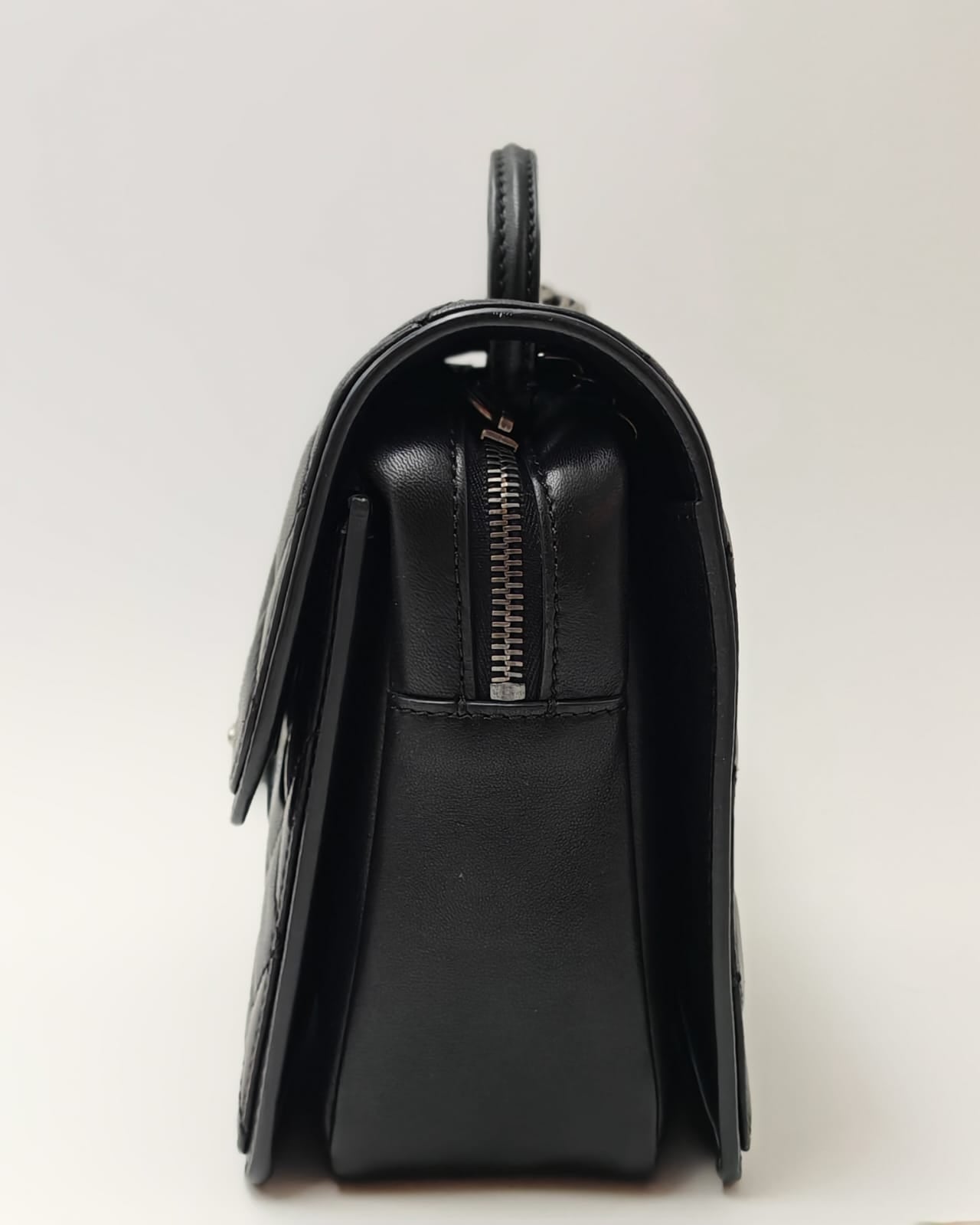 Chanel Classic Double Flap Bag – Black Calfskin with Aged Silver & Black-Tone Hardware