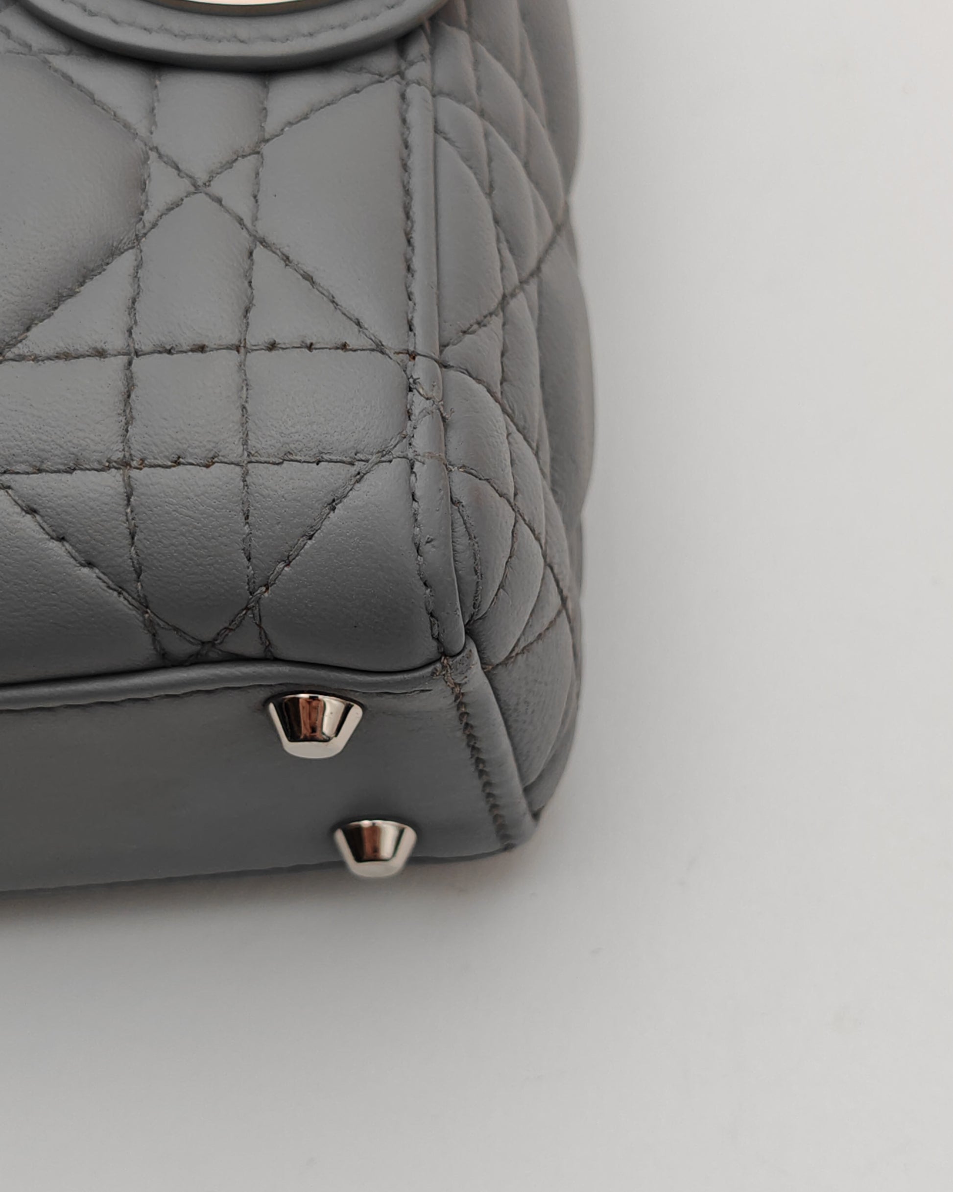 Christian Dior Lady Dior Mini in Grey Lambskin with Crystal-Embellished Strap