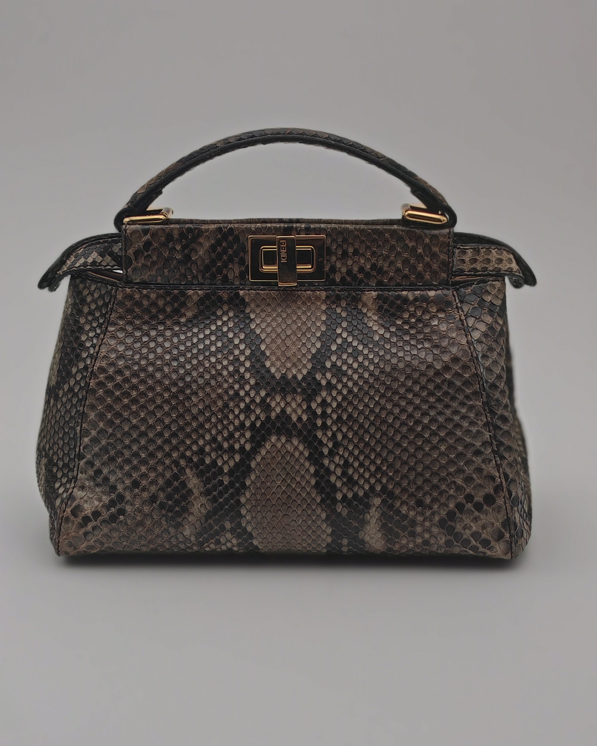 Fendi Mini Peekaboo Bag in Brown Python with Gold Hardware.